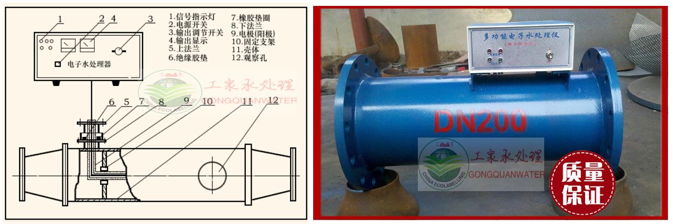 5、防垢率:>98%,除垢率>98%,殺菌滅藻率>97%,管道銹蝕速度減少>95%。